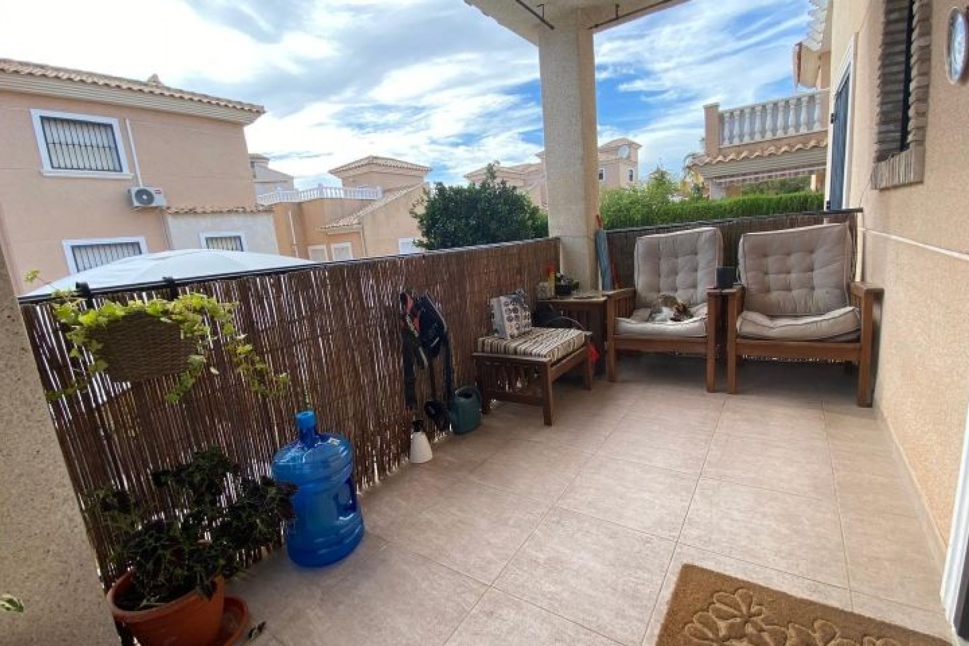 Detached south facing villa with garage, large terrace, communal pool, gated community and exceptional amenities Discover this wonderful 3 bedroom, 2 bathroom detached villa, designed to offer you maximum comfort and style. Located in a gated community, this property has its own garage in the basement, providing convenience and security. Enjoy the terrace and solarium, perfect for relaxing while you delight in the stunning south orientation that guarantees natural light throughout the day. The villa offers access to a communal pool, ideal for cooling off on warm summer days. Its location is unbeatable: just a few steps from the Consum store and just 2 km from the beach, where you can enjoy the sun and the sea. In addition, golf lovers will be pleased to know that there are golf courses just 4 km away. It is sold fully furnished, ready for you to move in and start enjoying your new home immediately. This villa is the dream retreat that combines luxury, comfort and proximity to the best attractions in the area. Don't miss the opportunity to acquire this gem in a privileged setting. Your new home awaits you!