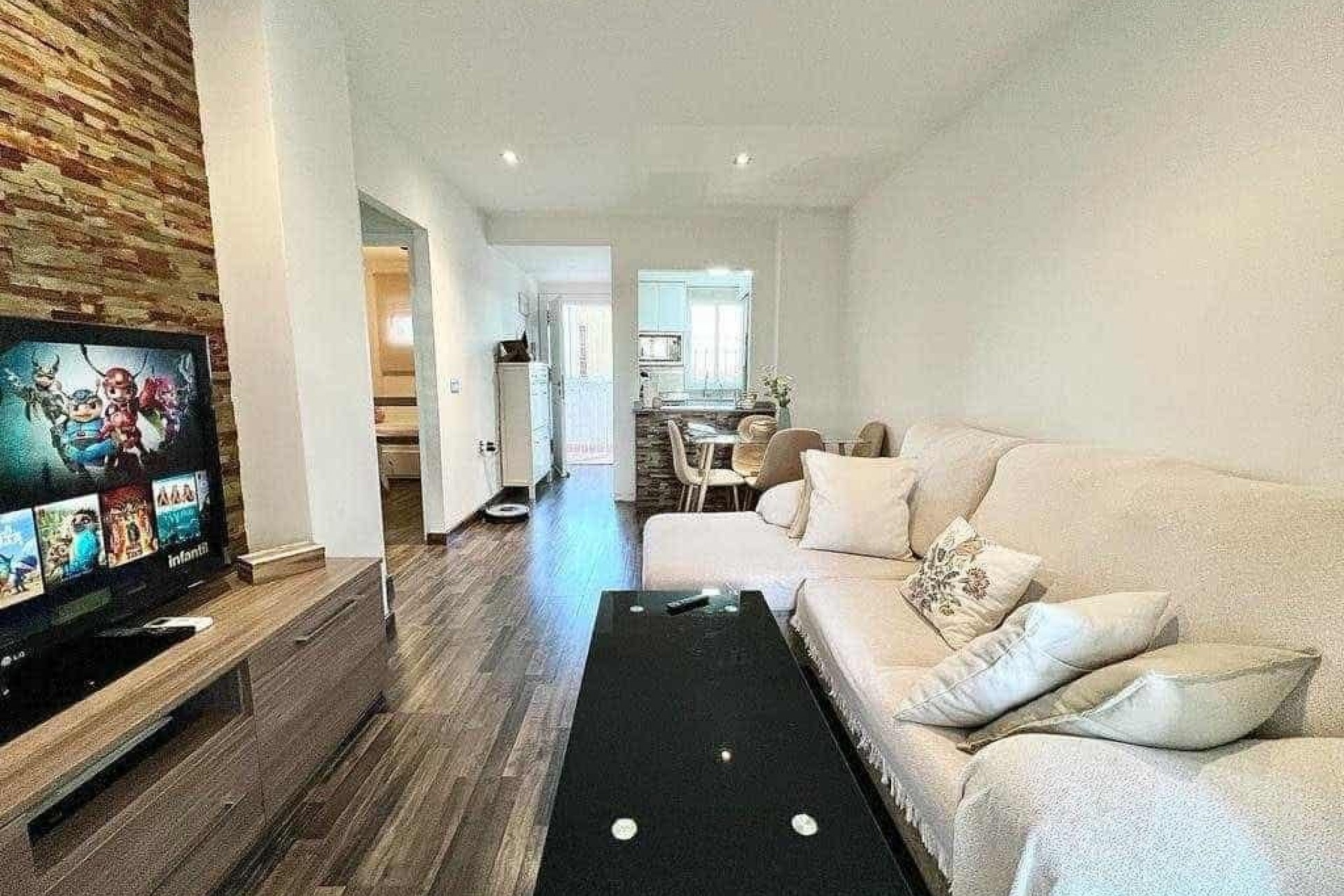 Esta propiedad tiene una superficie total de 65 m2 y se encuentra en la tercera planta del edificio.~El apartamento cuenta con 2 dormitorios y 1 baño .~~Es una oportunidad única , ya que el apartamento está listo para entrar a vivir de inmediato , sin gastos adicionales.~Se entrega completamente amueblado y equipado , con aire acondicionado y persianas de seguridad para mayor comodidad y tranquilidad.~El edificio cuenta con ascensor , piscina comunitaria y aparcamiento en la calle con fácil acceso.~Además, los residentes tienen acceso a un solárium comunitario en la azotea , perfecto para relajarse y disfrutar de las vistas.~~Ubicada en una tranquila zona residencial , a solo 3 minutos en coche de la playa (aprox. 1,5 km).~Una excelente opción tanto para alquiler vacacional como para vivienda permanente en la soleada Costa Blanca.~~Contáctenos para obtener más información o programar una visita.