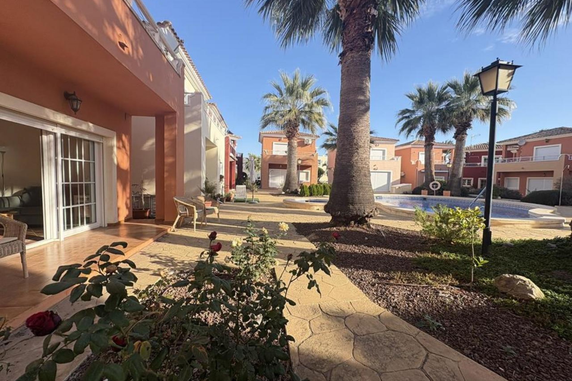 Vie indépendante à Altaona Golf Cette charmante villa indépendante de deux étages offre un style de vie paisible et privé au cœur d’Altaona Golf. La propriété comprend deux chambres, une salle de bain complète et des toilettes invités, réparties sur deux niveaux. Au rez-de-chaussée, vous trouverez une cuisine ouverte de style américain, lumineuse et entièrement intégrée au salon et à la salle à manger, créant un espace convivial. Ce niveau comprend également des toilettes invités et un petit espace de rangement. À l’étage, la maison dispose de deux chambres bien proportionnées et d’une salle de bain complète. Depuis la chambre principale, vous accédez directement à une terrasse privée avec vue dégagée sur les espaces communs. À l’extérieur, les résidents peuvent profiter d’une superbe zone commune avec piscine et jardins paysagers. La propriété nécessite quelques améliorations esthétiques, offrant une excellente opportunité de personnalisation. À propos d’Altaona Golf Altaona Golf est un complexe sécurisé et bien établi, entouré de nature et de montagnes, offrant tranquillité et qualité de vie. Situé à quelques minutes de Murcia, il combine calme et excellentes connexions. Merci beaucoup d’avoir regardé la vidéo.